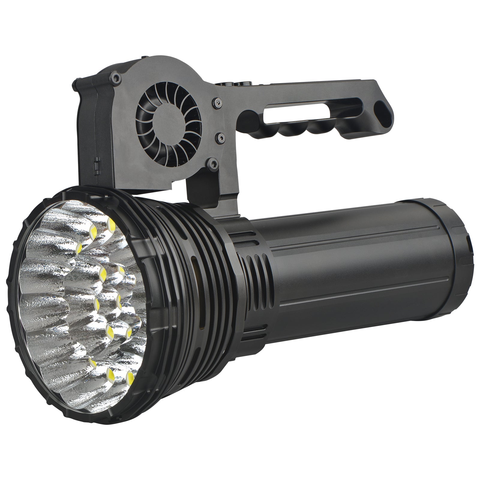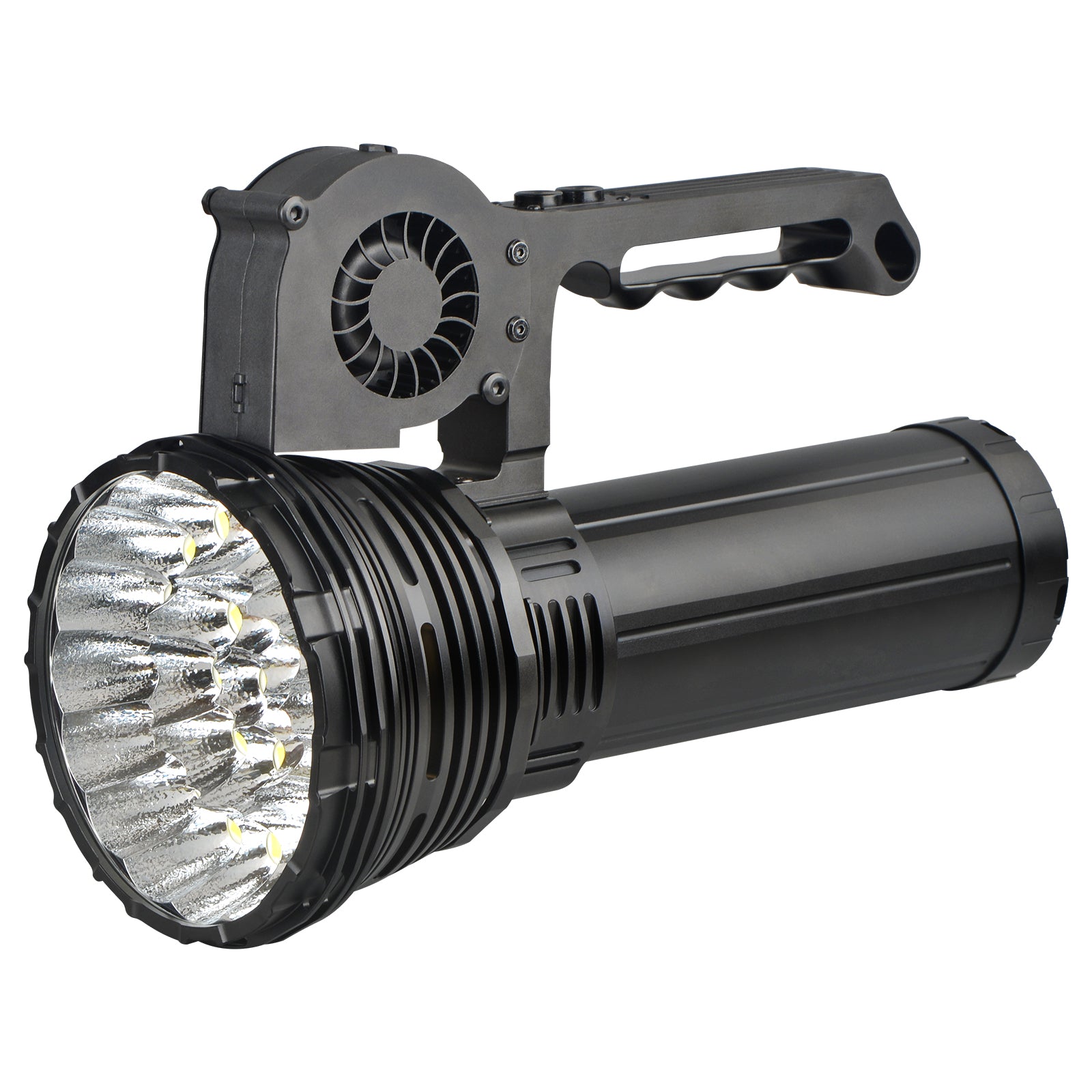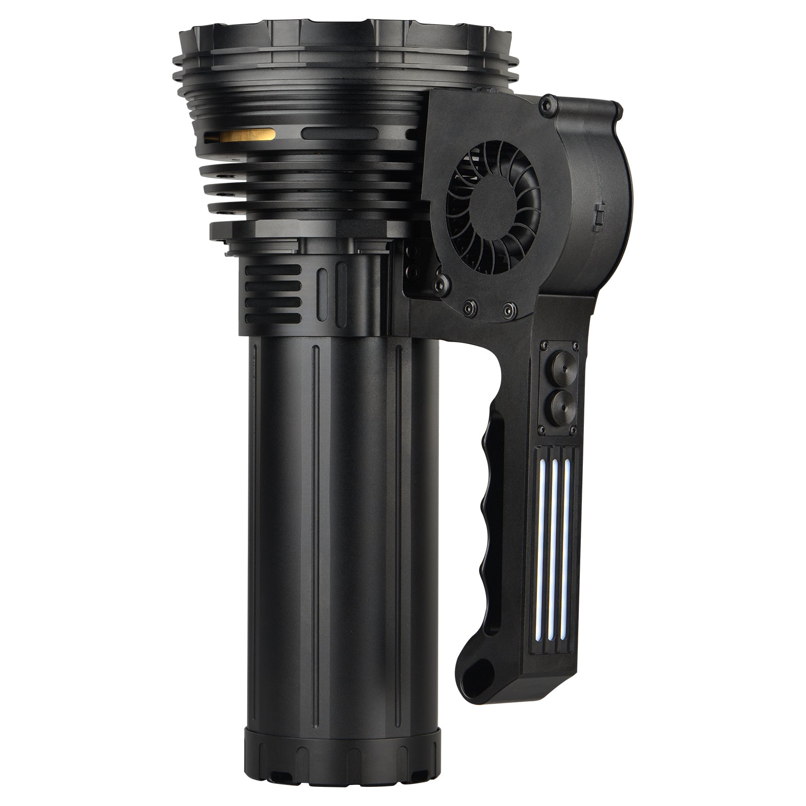 Specifications Body :6063aluminumalloymaterialwithtypeIIIhard- coatanodizing. Lens: reinforcedglass. Color : silver grey Battery: Built-in 12-cell 21700 batteries, 48,000mAh capacity. Springs: Silver plated copper alloy with low low internal resistance Charging Indicator: The over-temperature protection switch will flash red and blue alternately. When the temperature returns to normal, the charging switch will illuminate red. Upon charging completion, the switch will illuminate blue. charging time:48,000mAh100W charger Charging time: approximately 2 hours LED:24pcs SFH55 Emitter:3000K/6000-6500k Ingress rating:Normal waterproof not diving Dimension: 285mm( length)x130mm(head)x75mm (tail)x73mmat the handle Weight:: N.W 3000g G.W3750g